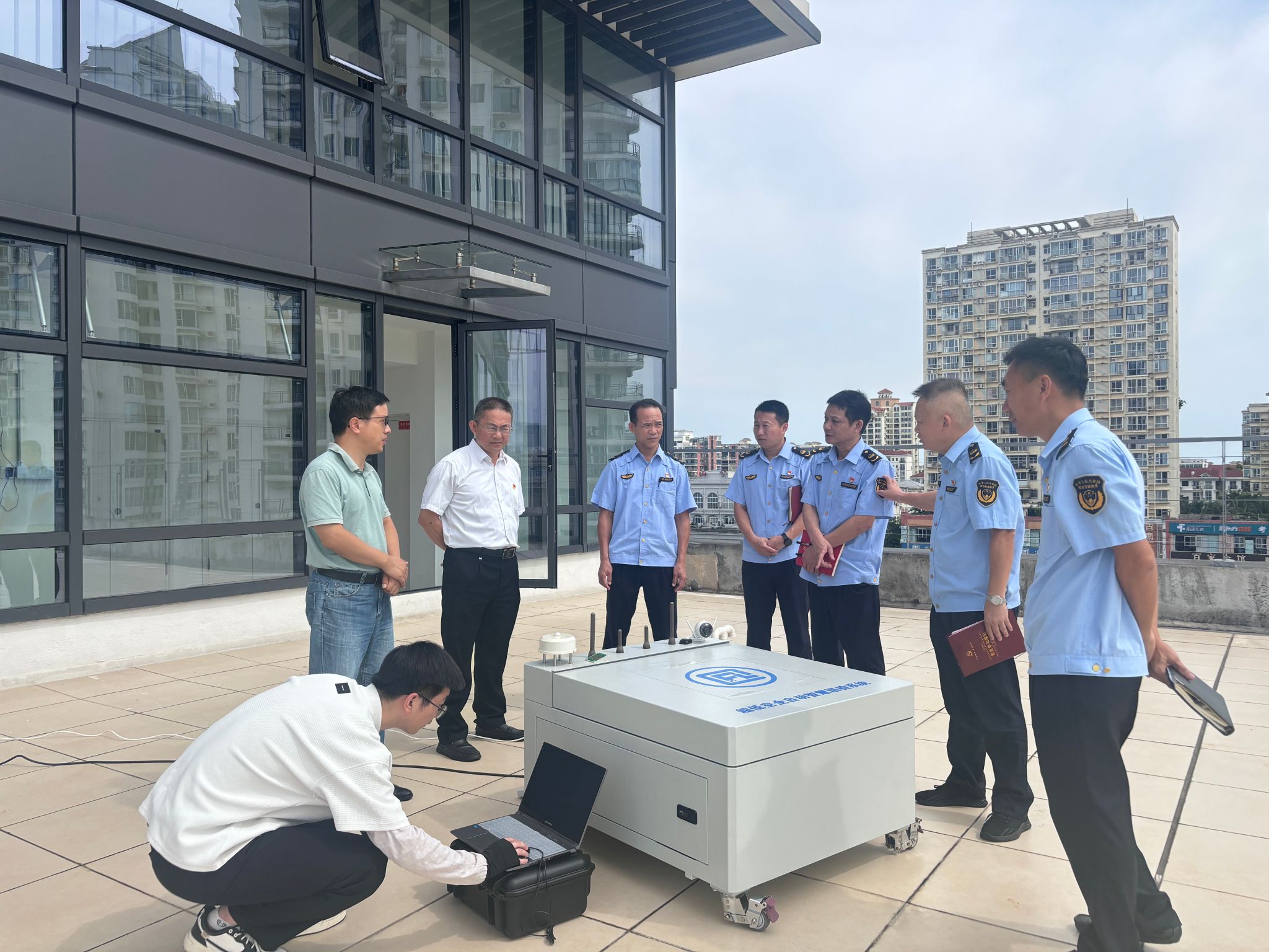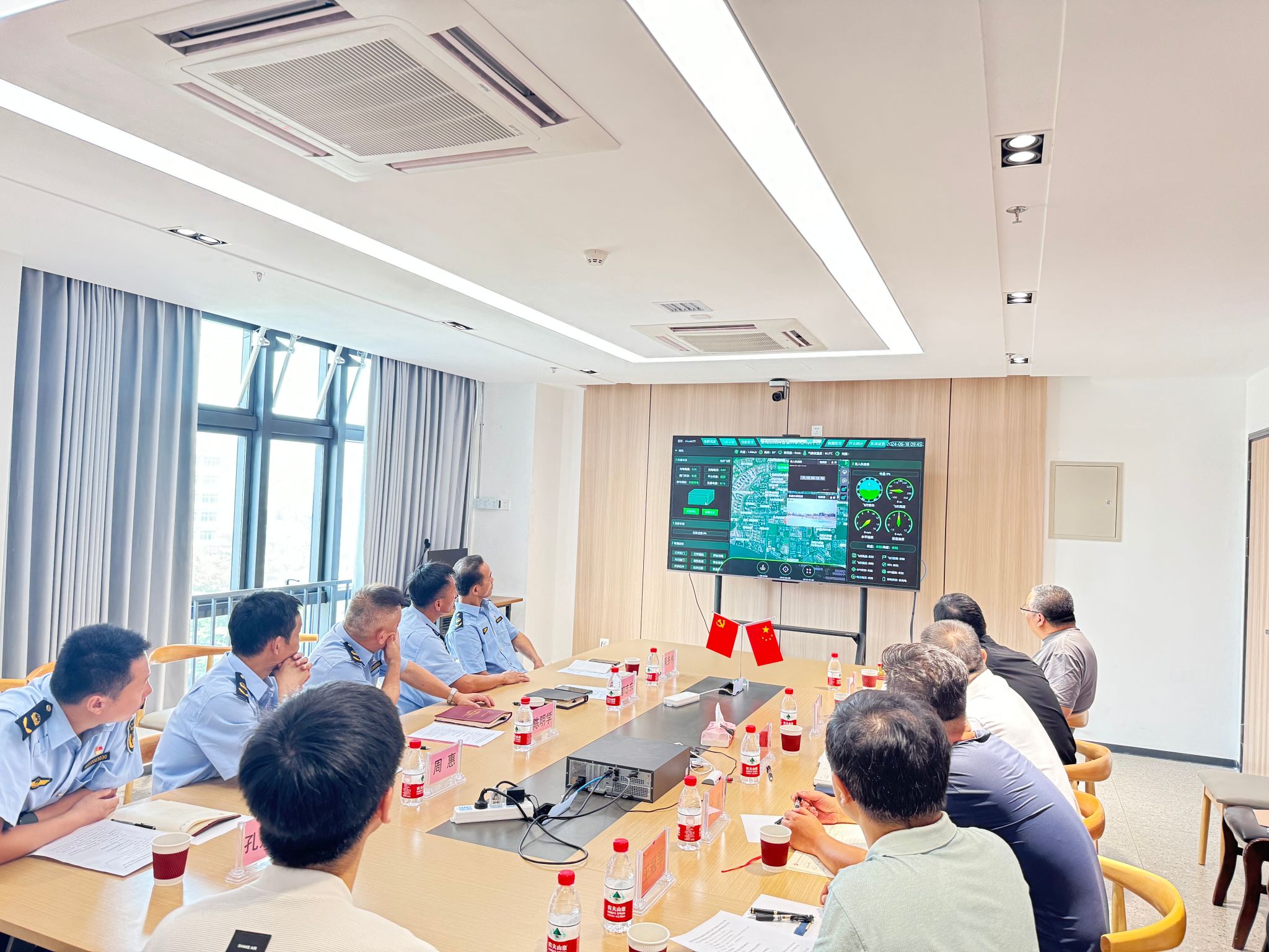 会后一同参观学习非现场执法新模式,户外展示无人机部署设备的运行状态。